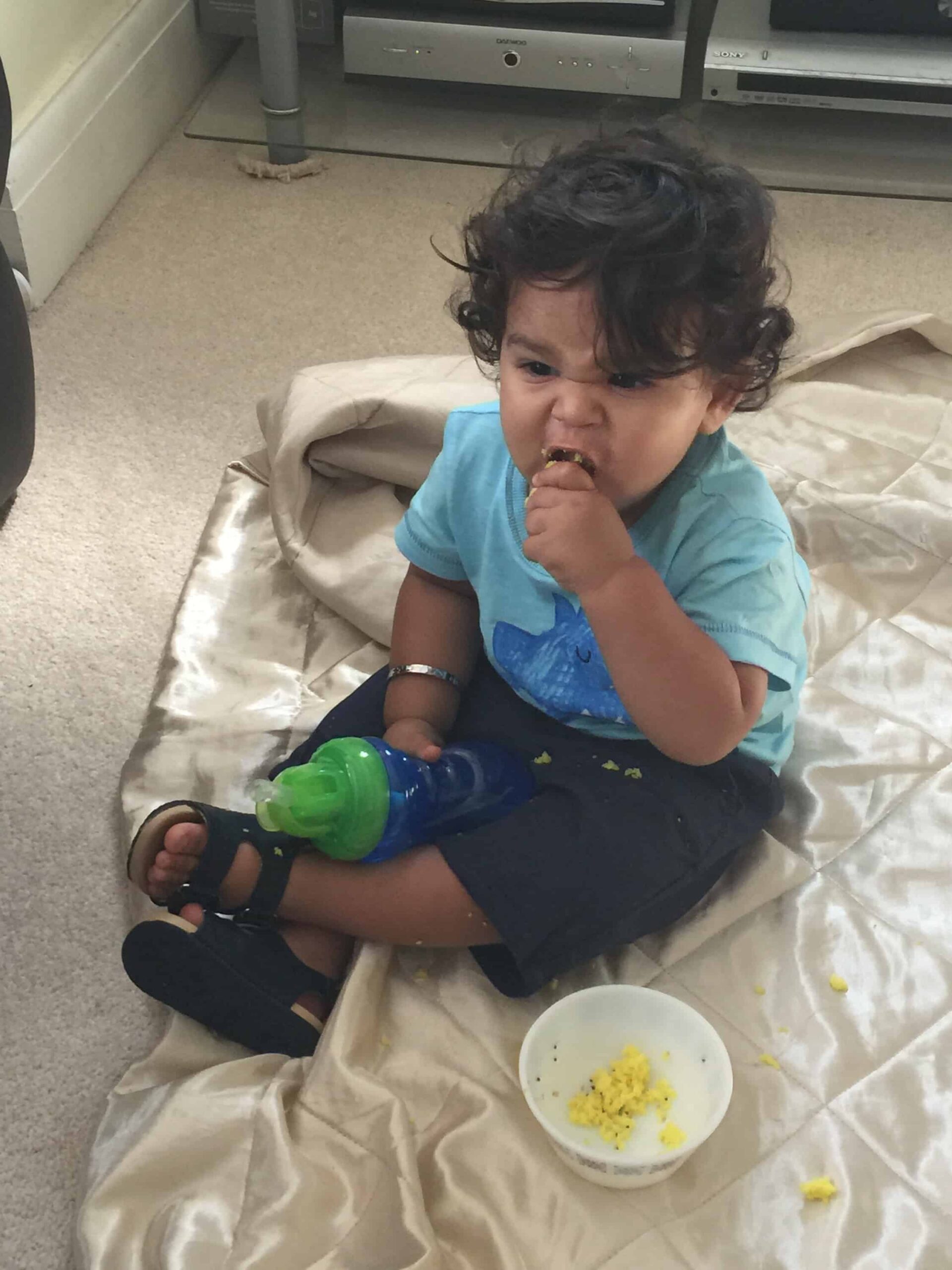 Some of the new foods he’s tried this month include raisins (not sure why he’s never had these before!), parsley, dokra, chocolate eclair (he stole mine!)