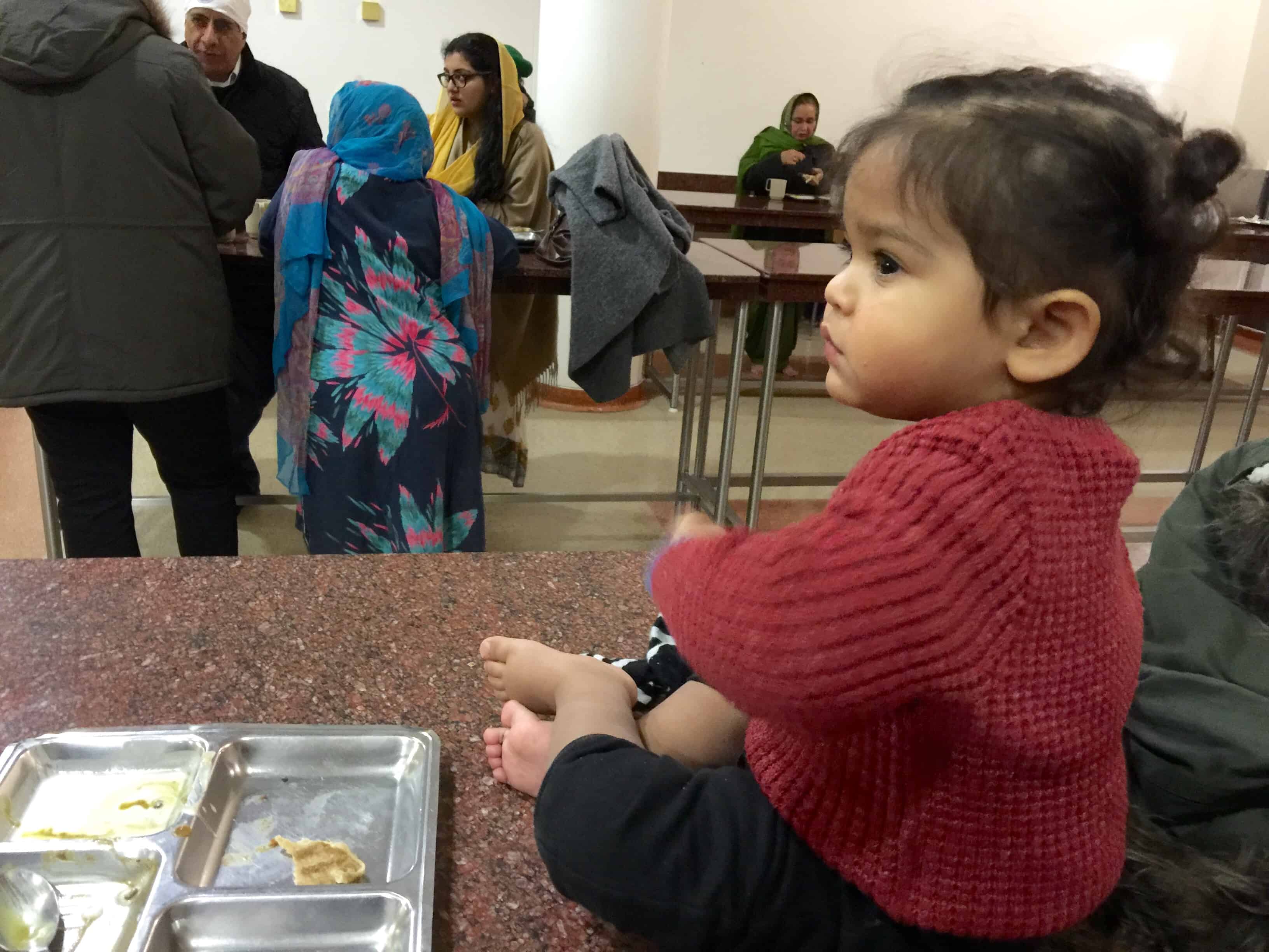 We listened to kirtan for five minutes, or tried to anyway! Arjun was up to his usual antics of running up and down the path to do matha – I’m definitely STILL THAT mum at the Gurdwara! He enjoyed his langar and insisted on breaking his roti (chapatti) himself.