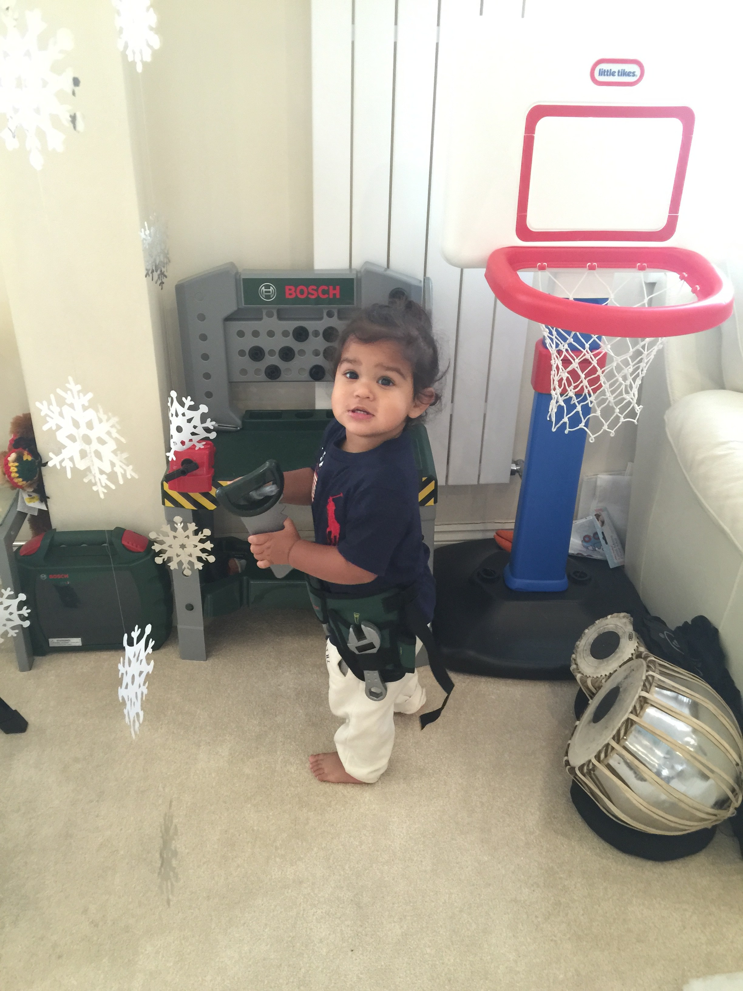 His Gurpurab gift was a cute little Bosch tool belt to match his daddy’s. He’s obsessed with tools and “fixing” things so we thought this would fit!